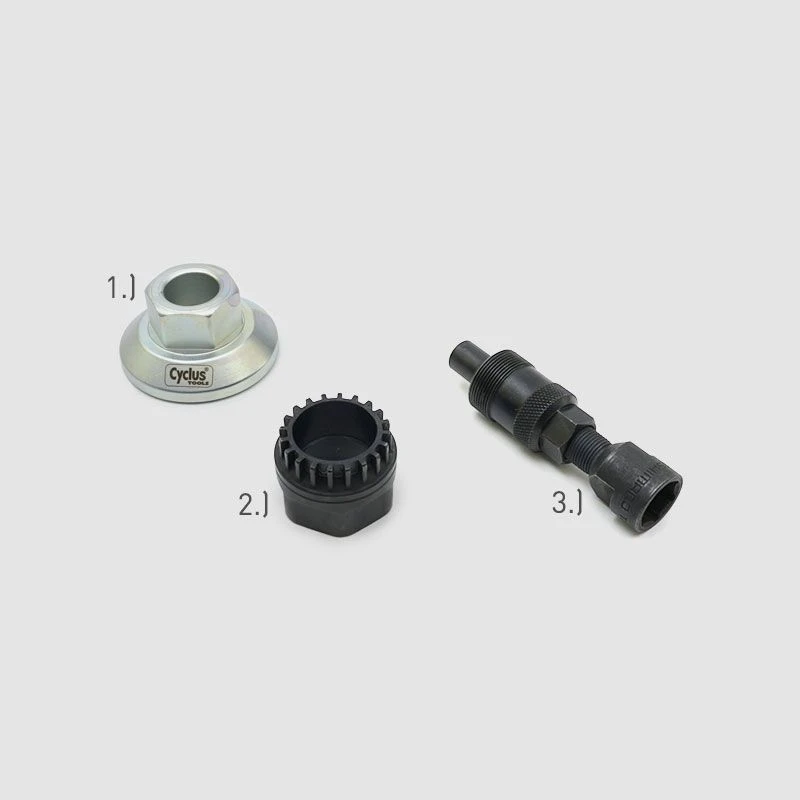 Dieses Werkzeug-Set für Brompton ist nur erforderlich in Kombination mit dem Tretsensor-Set für eine professionelle Montage. Wenn Sie das Standard-Set mit der teilbaren Magnetscheibe einbauen möchten, benötigen Sie kein Werkzeug. Informationen über die Verwendung der einzelnen Werkzeuge finden Sie in den jeweiligen Produkten.